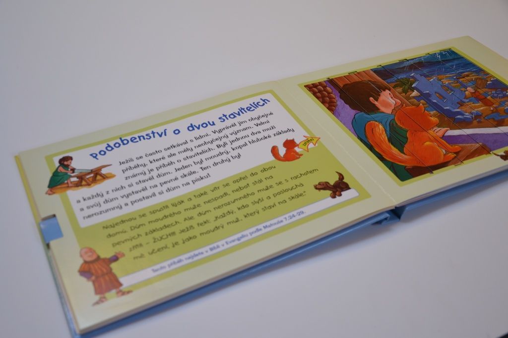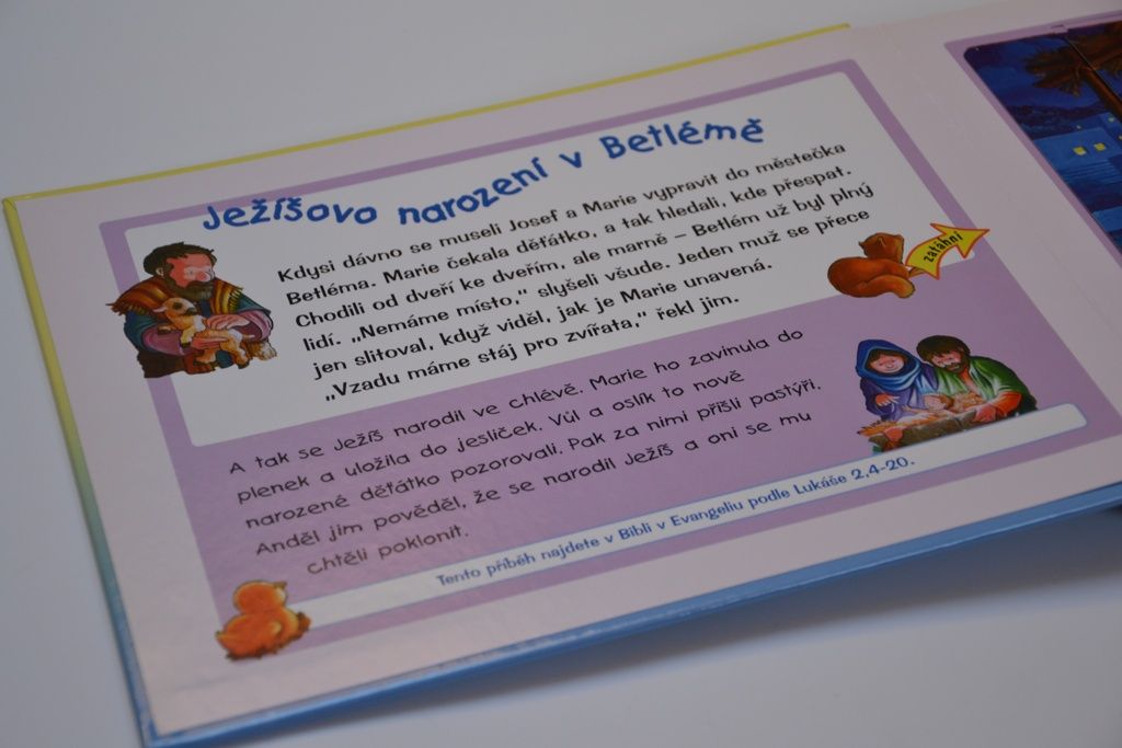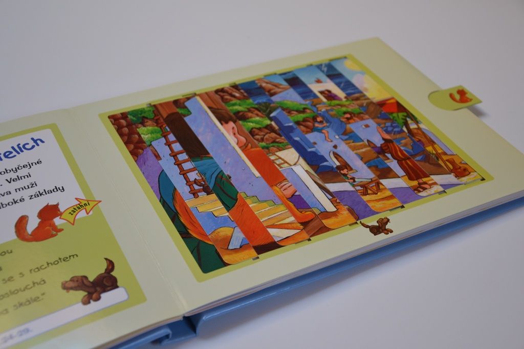 Oblíbená Dětská Bible s posuvnými obrázky biblických příběhů o Ježíši a Jeho životě. V knize najdete pět oblíbených biblických příběhů. Děti mohou jednoduše zatáhnout za poutko na kraji stránky a původní obrázek se překryje novým, který ilustruje pokračování příběhu.