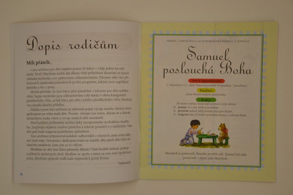 Možná přivítáte, že tyto lekce jdou paraelně s lekcemi pro děti vyššího věku. Stejné myšlenky jsou zdůrazňovány celý měsíc v obou katergoriích předškolního věku, avšak lekce pro děti vyššího předškolního věku obsahují více detailů daného příběhu.